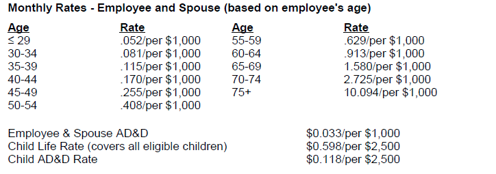 Voluntary Life and AD&D Insurance Rates: